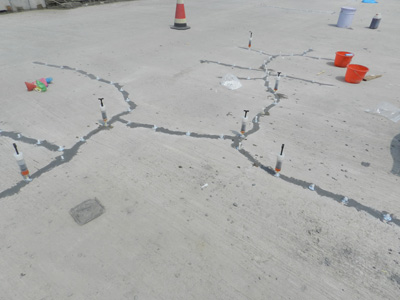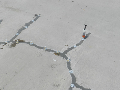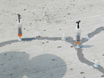 (4)封閉裂縫:采用快干型封縫膠,沿裂縫表面涂刮,留出注入口;
